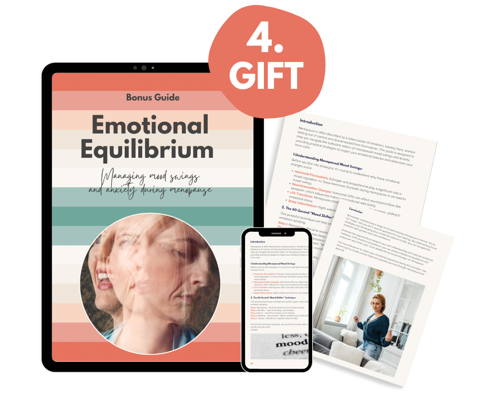 ALSO INCLUDED: 🎁 5 FREE BONUS GIFTS 🎁 that help you manage mood swings, improve sleep, boost libido, and much more (total value of $184)